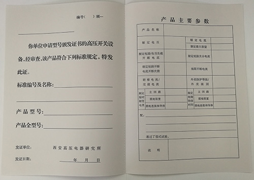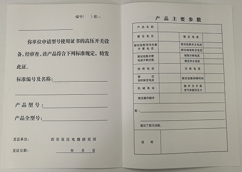 2、型号证书发放原则:一个产品办理型号证书时,其内配的主要元件应办理过型号证书。例如:真空断路器发放型号证书的前提,是其所用灭弧室应具有型号证书;若为固封极柱式真空断路器,则其固封极柱应具有型号证书。其次,申请办理型号证书的厂家其产品应进行过符合规定要求的鉴定(即,应有产品的鉴定证书)。此外,证书发放时,证书办理部门都会对厂家的相关材料(主要是技术资料,详见文件《如何申请并办理产品型号证书》中项目 2 的 a)~i)项)进行认真的审查。