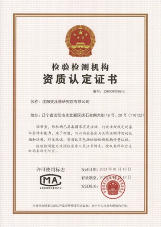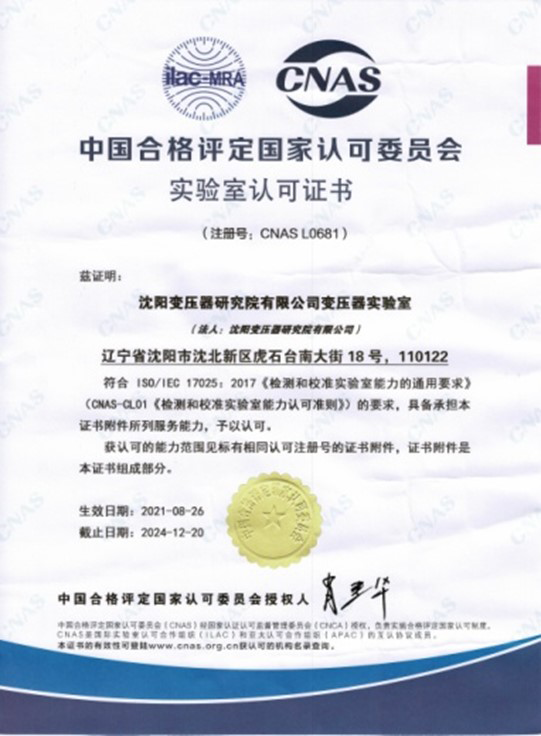 全资子公司,成立于1960年,位于沈阳市沈北新区,承担了全国变压器行业的标准制、修订和信息管理工作,是全国标准化委员会(SAC)变压器标委会(TC44)、互感器标委会(TC222)及小型变压器标委会(TC418)的秘书处单位,同时是国际电工委员会(IEC)电力变压器技术委员会(TC14)、互感器技术委员会(TC38)和小型电力变压器、电源装置及类似产品的安全技术委员会(TC96)及国际大电网委员会(CIGRE)变压器学术委员会的国内技术归口单位,是中国电器工业协会变压器分会秘书处常设单位。国家变压器质量检验检测中心(CTQC)设立于沈变院。