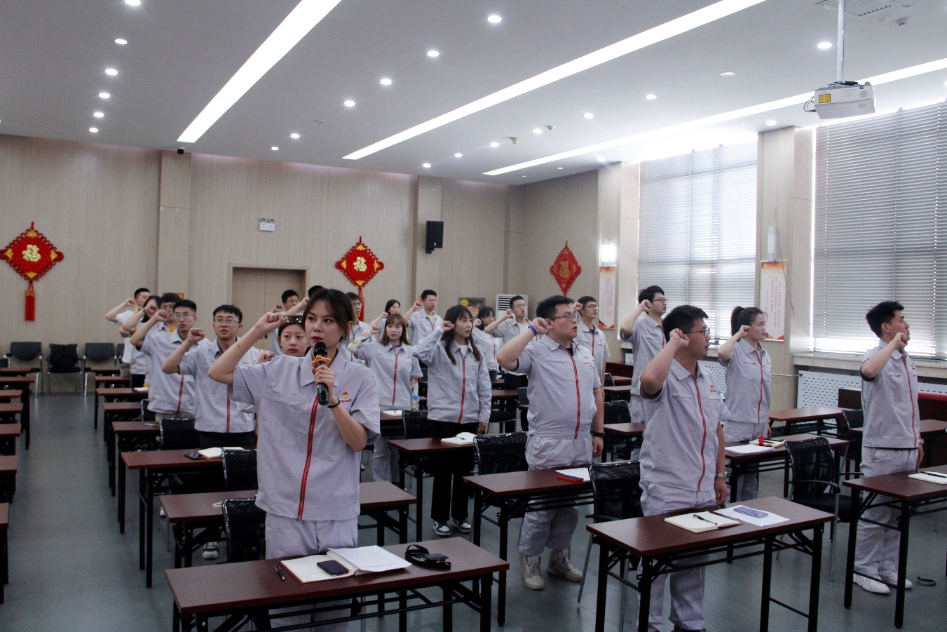 在重诵《共青团员和少先队员代表集体致献词》环节,团员青年代表马占川用一字字一句句表达着团员青年对党的丰功伟业、艰苦奋斗的崇高敬意,“请党放心,强国有我!”铿锵有力的诉说着投注 青年人接续奋斗的坚定决心和精神力量。随后,全体团员重温了入团誓词。用誓言坚定了初心,表达了决心。