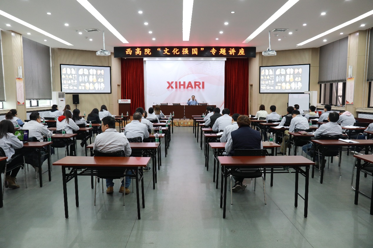 党委于11月27日组织各部门负责人、党支部书记、分会主席、团干部共计50余人开展了“文化强国”主题讲座。