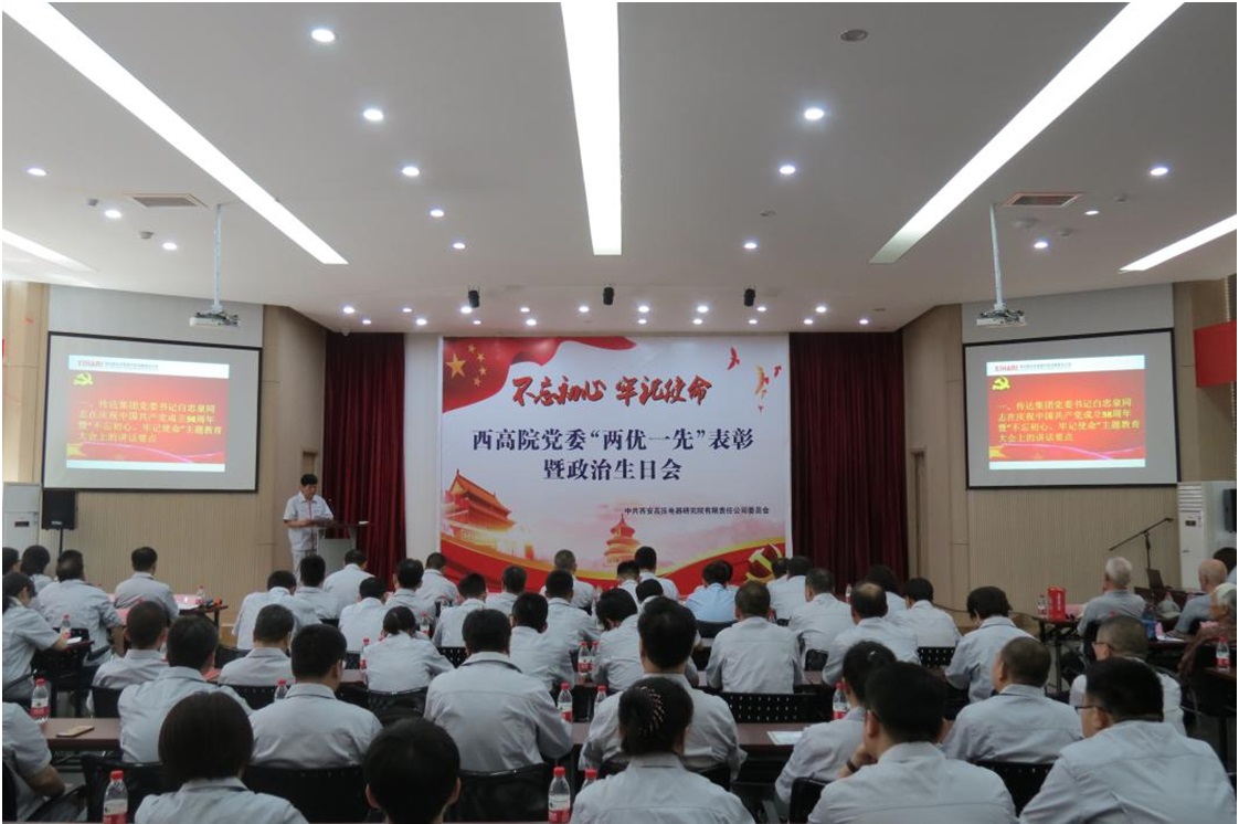 首先,全体起立奏国歌。当国歌声响起,心中的自豪感油然而生,在场所有人精神抖擞高唱国歌。随后,执行董事王建生同志传达了西电集团党委书记白忠泉同志在庆祝中国共产党成立98周年暨“不忘初心、牢记使命”主题教育大会上的讲话精神。元复兴同志宣读了《关于表彰优秀共产党员、优秀党务工作者、先进党支部的决定》,希望受表彰的先进集体和个人要珍惜荣誉,戒骄戒躁,发扬成绩,充分发挥模范带头作用,再创佳绩。号召各党支部、广大共产党员和党务工作者向受表彰的先进典型榜样学习,学习他们顾全大局,乐于奉献的优秀品质;学习他们敢于担当,爱岗敬业,刻苦钻研,团结协作,在平凡工作岗位上创造一流业绩的奉献精神,为开启投注 高质量发展新局面而共同努力奋斗!院班子成员为在2017-2019年度党建工作中涌现出来的3个先进基层党支部、44名优秀共产党员、12名优秀党务工作者颁发了证书和奖牌。