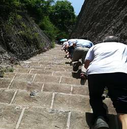 下午,前往薛家寨革命旧址重走“红军路”,沿着当年红军的足迹攀上了海拔1606米处于绝壁危崖间的的红军营地,参观了一、二、三、四号寨旧址和设立在岩洞中的指挥部、军医院、修械厂、被服厂、仓库等遗址,其山峦叠嶂、沟壑纵横、独特的地形地貌,以无声的语言默默诉说着这里发生的一切,传颂着革命者不屈不挠的悲壮故事,体现了我党的集体智慧与英勇无畏的革命精神。