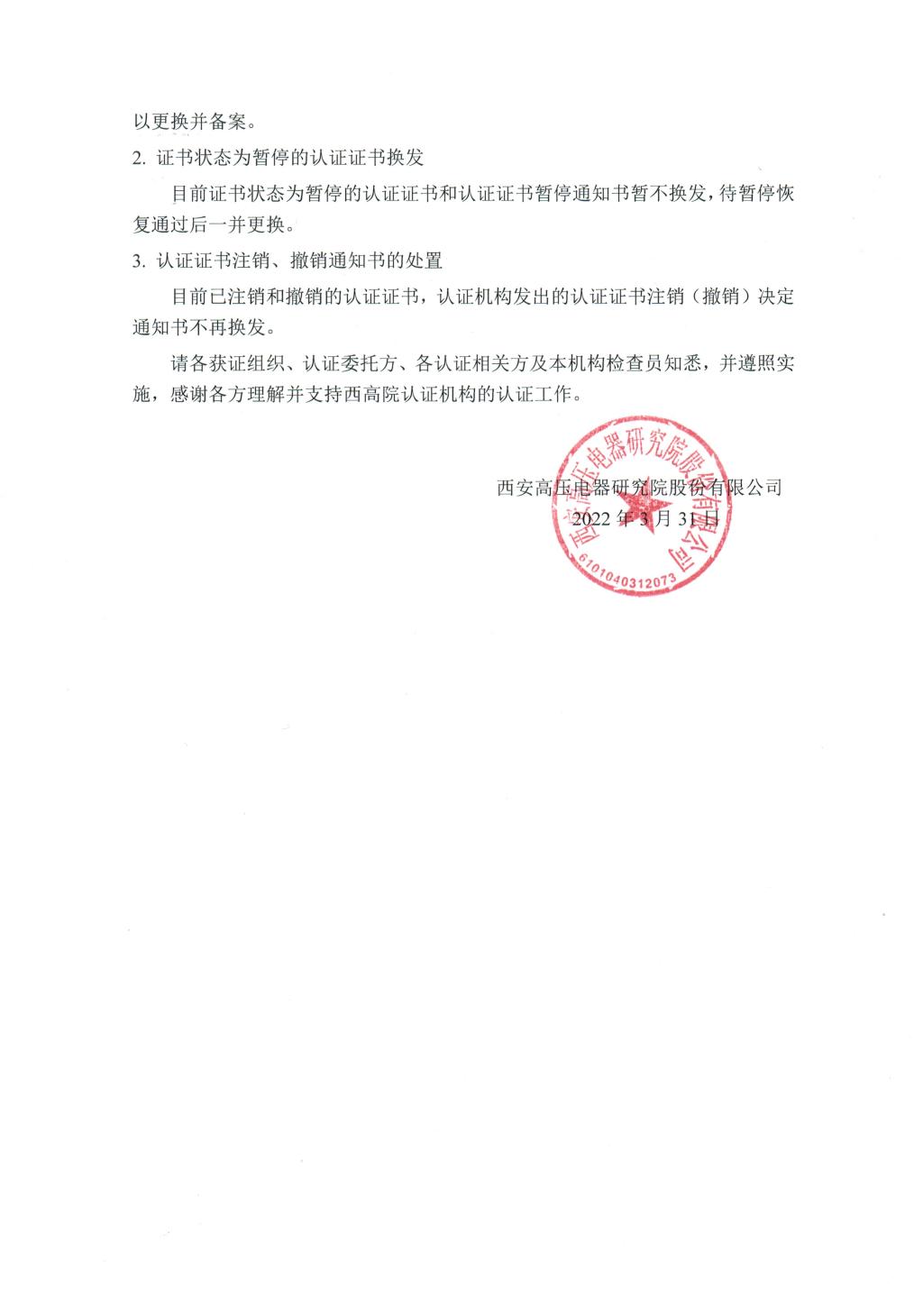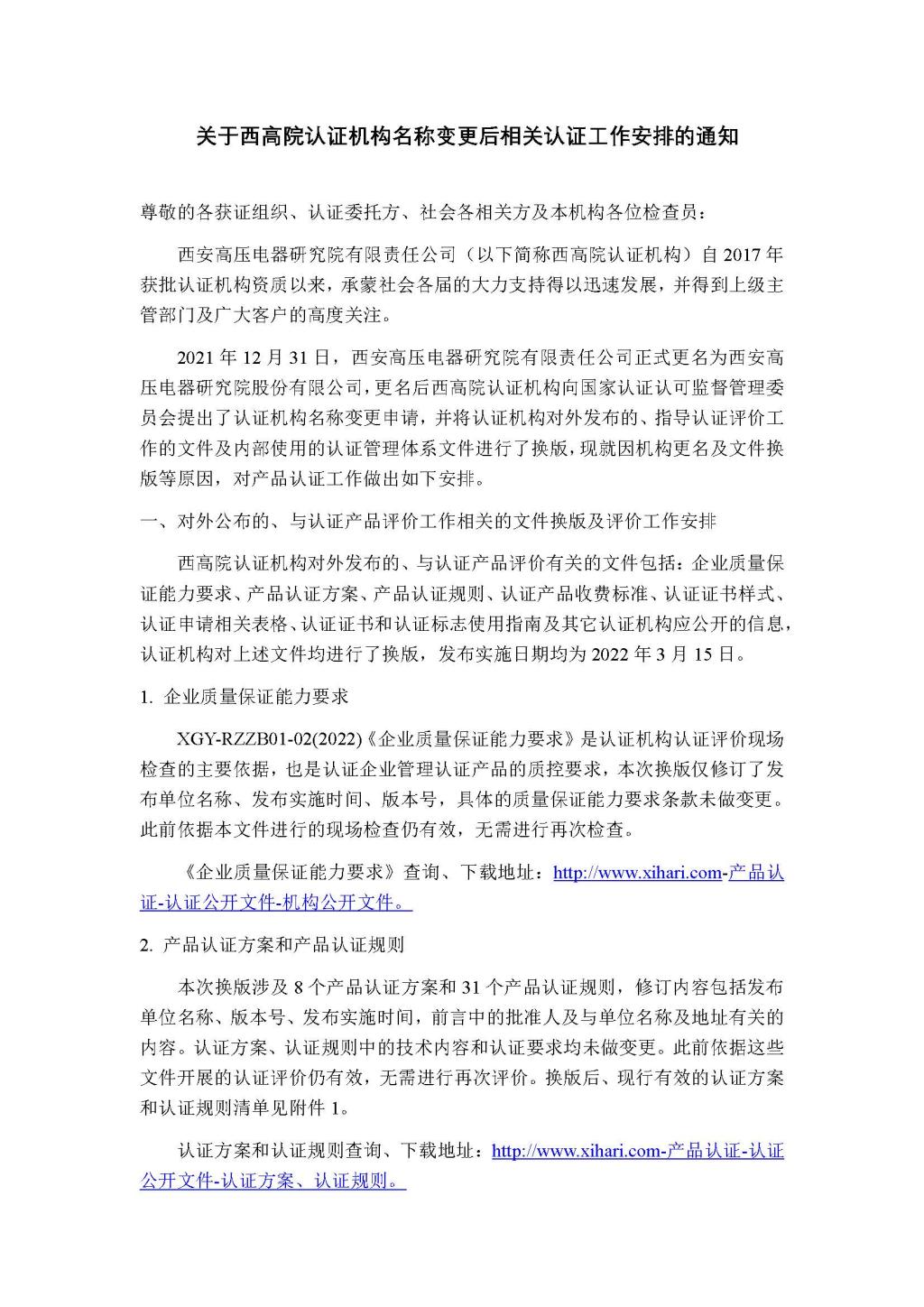 关于投注 认证机构更名后相关认证工作安排的通知