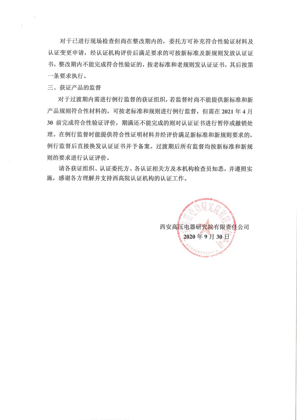 关于GB/T 3906标准换版后相关认证工作安排的通知