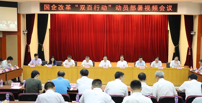 国企改革“双百行动”动员部署视频会议8月17在国资委召开。国务院国有企业改革领导小组办公室主任、国资委主任肖亚庆出席会议并讲话,强调要深入学习贯彻习近平新时代中国特色社会主义思想和党的十九大精神,按照国务院国有企业改革领导小组第一次全体会议的部署和要求,扎扎实实把“双百行动”抓出成效,充分发挥示范带动作用,将全国国有企业改革向纵深推进。国务院国有企业改革领导小组办公室副主任、国资委副主任翁杰明主持会议。国务院国有企业改革领导小组办公室成员单位有关负责同志,国务院国资委有关厅局负责同志,“双百行动”专家组成员代表在主会场参加会议。各地国资委主要负责同志,“双百行动”涉及的中央企业集团及相关部门负责同志、“双百行动”企业主要负责同志在分会场参加会议。