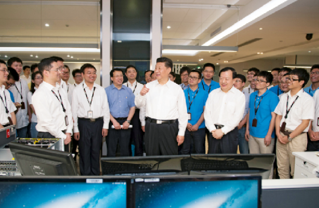 2015年5月26日下午,习近平总书记莅临位于杭州的中电海康控股公司海康威视考察调研。(图片来源:新华社)