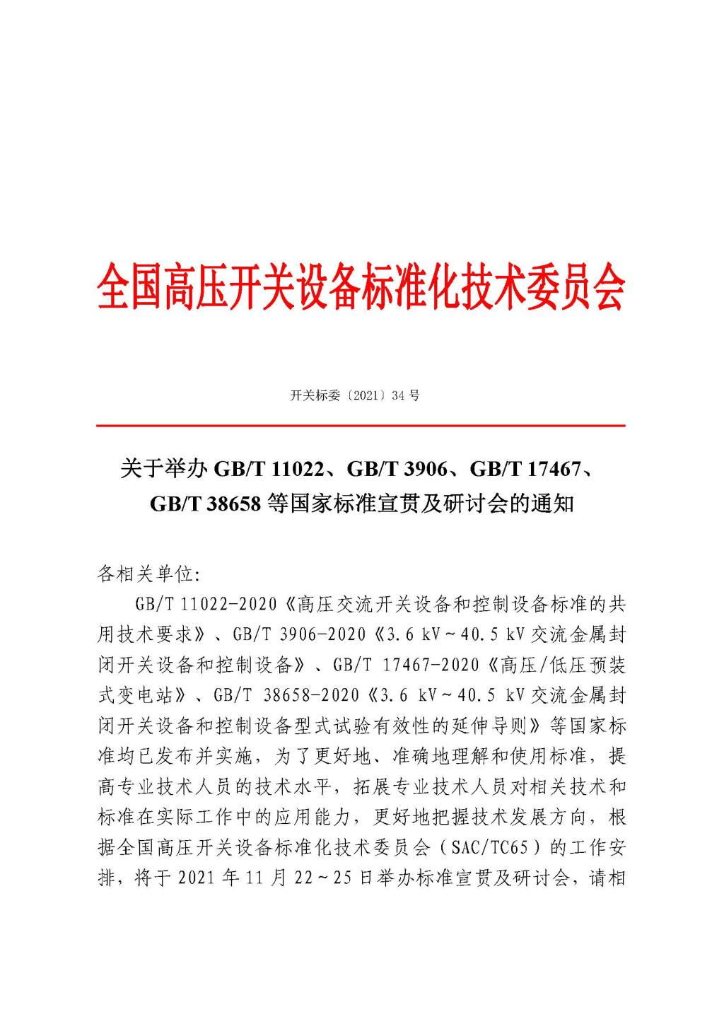 关于举办GB/T 11022、GB/T 3906、GB/T 17467、GB/T 38658等国家标准宣贯及研讨会的通知