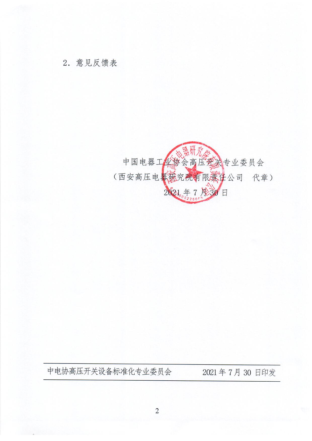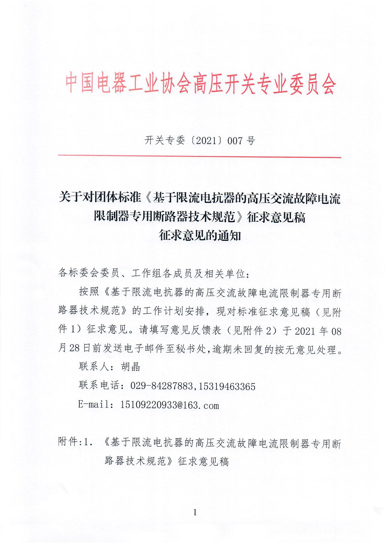 关于对标准《基于限流电抗器的高压交流故障电流限制器专用断路器技术规范》征求意见稿征求意见的通知