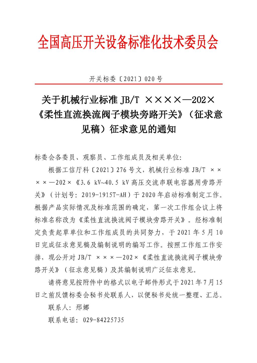 柔性直流换流阀子模块旁路开关-征求意见通知