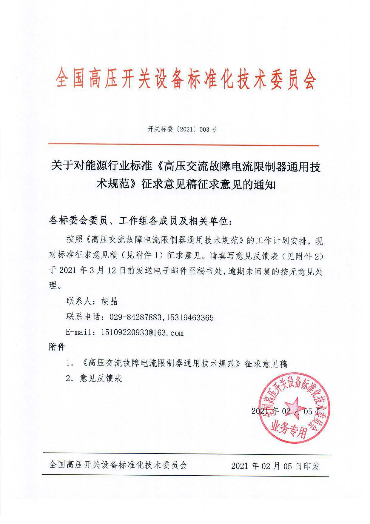 关于对能源行业标准《高压交流故障电流限制器通用技术规范》征求意见稿征求意见的通知.pdf