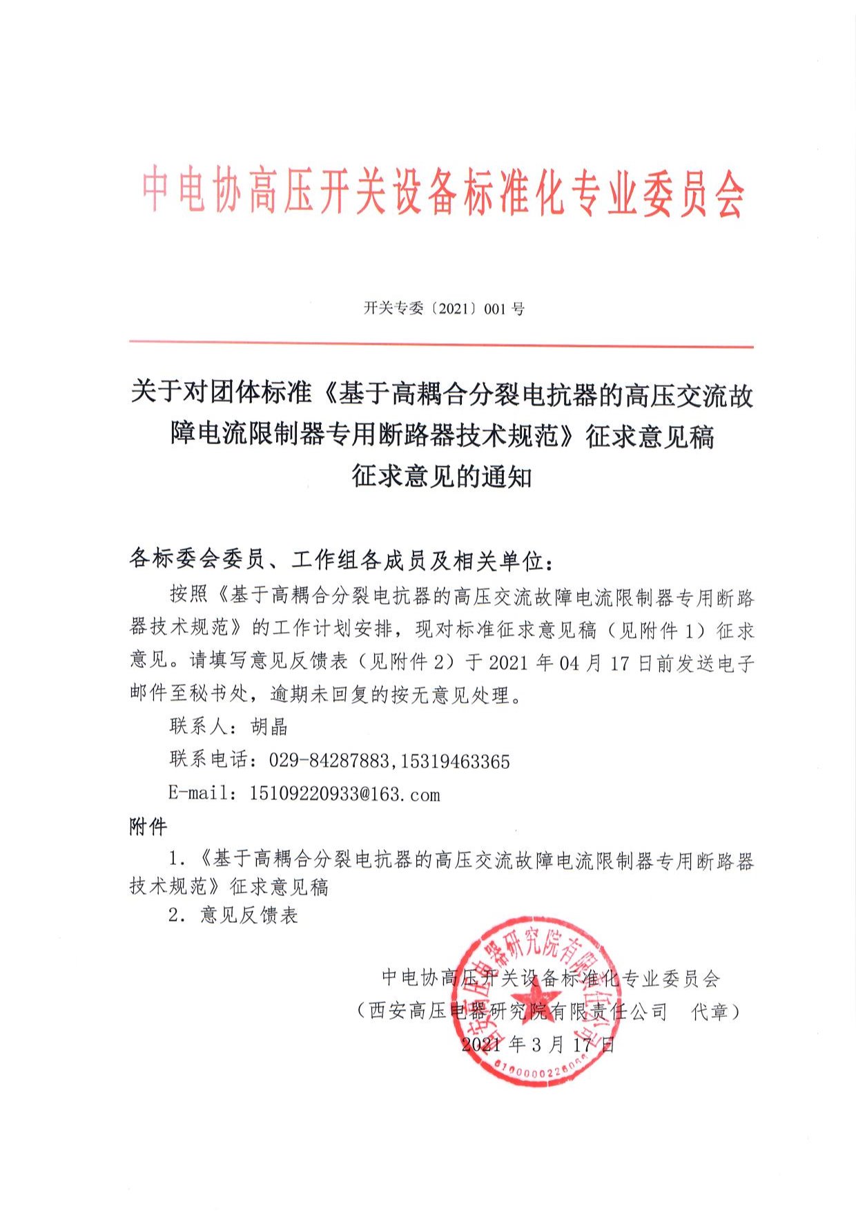 团体标准《高耦合分裂电抗器型限流器专用断路器技术规范》征求意见稿通知.pdf