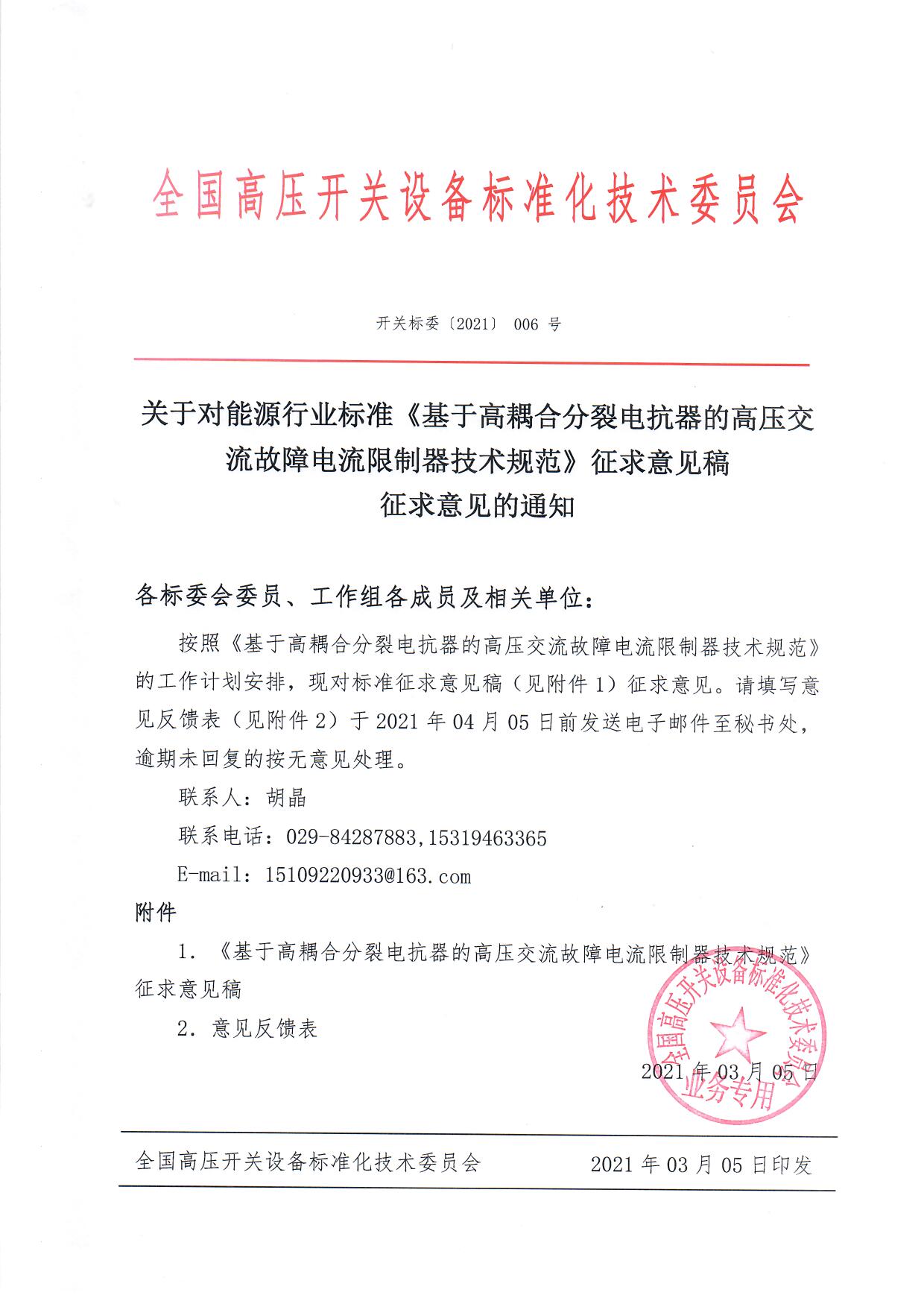 能源行业标准《基于高耦合分裂电抗器的高压交流》征求意见稿通知