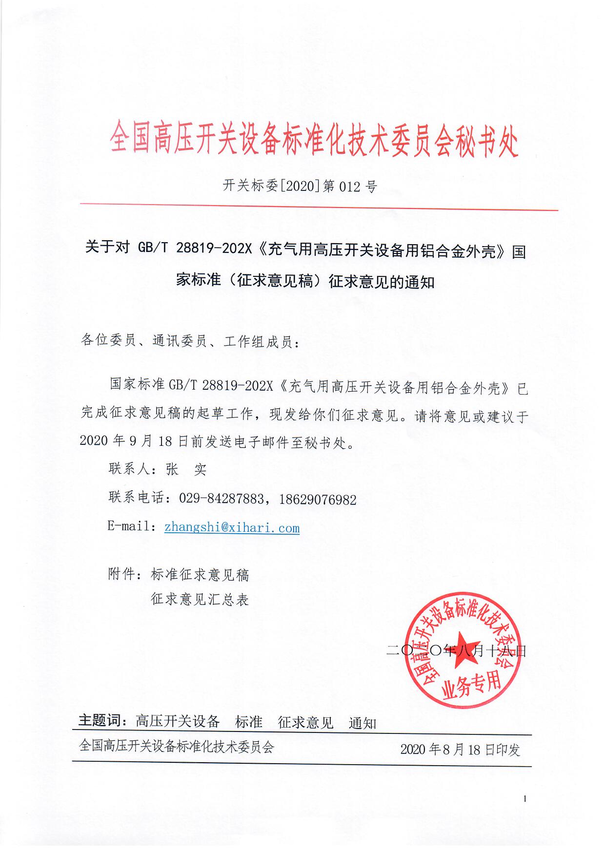充气用高压开关设备用铝合金外壳 征求意见的通知