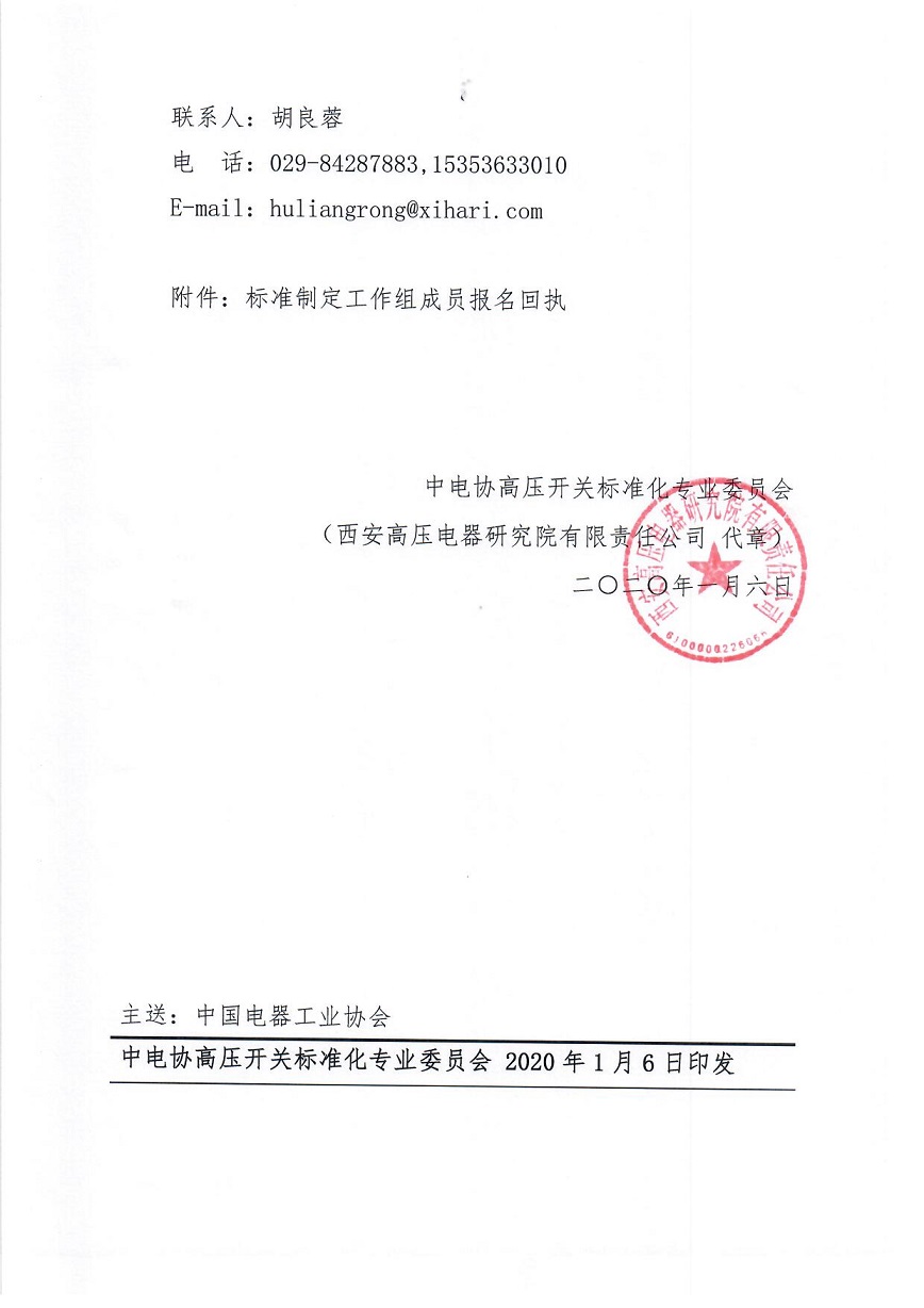 关于中电协高压开关标准化专业委员会招募工作组成员的通知