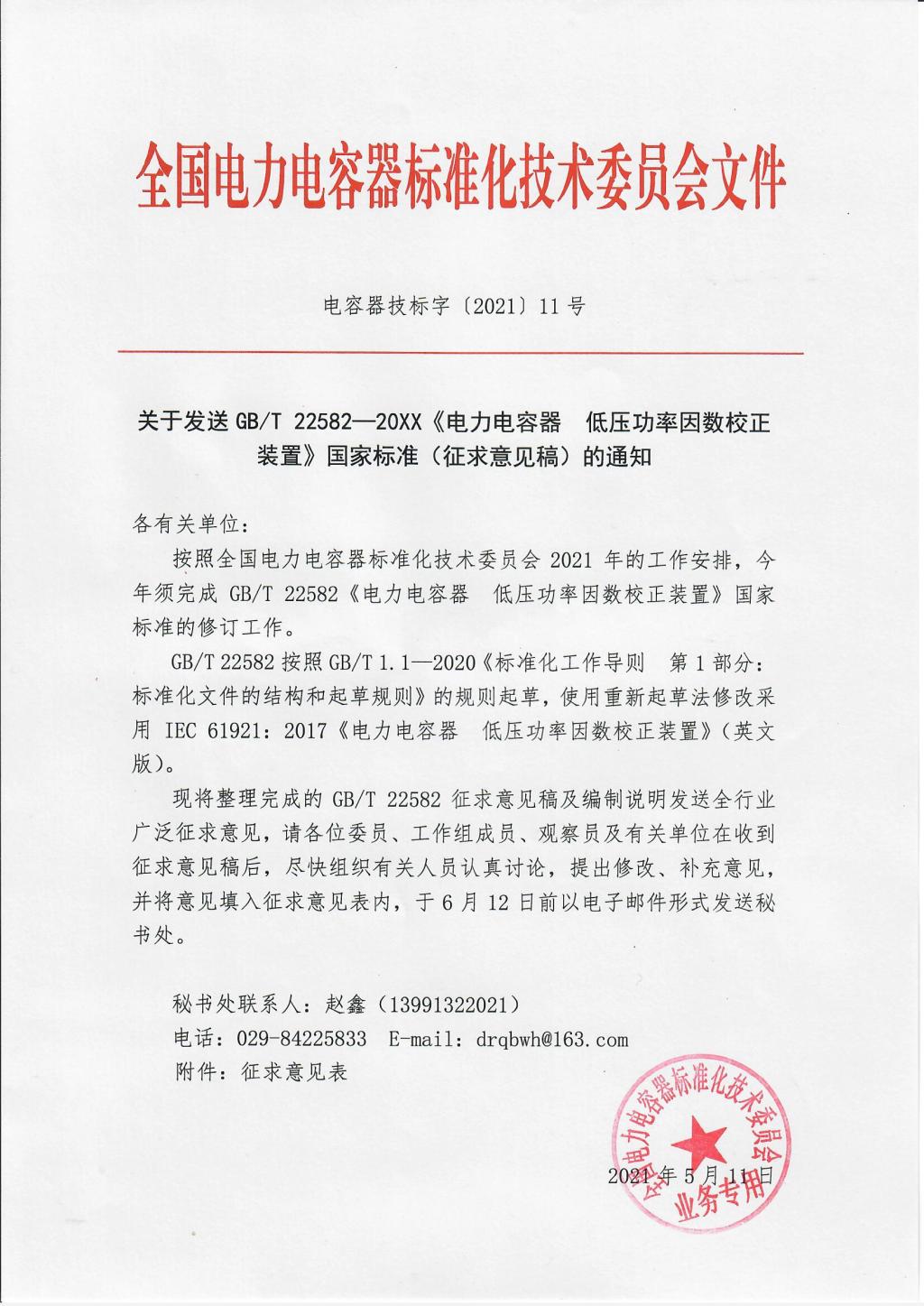 电容器技标字(2021)11号——关于发送GBT22582国家标准征求意见稿的通知