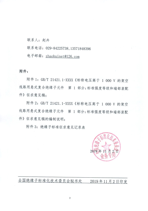 征集GB/T XXXXX《高压交流和直流系统用混合绝缘子—定义、试验方法和判定准则》等两项绝缘子