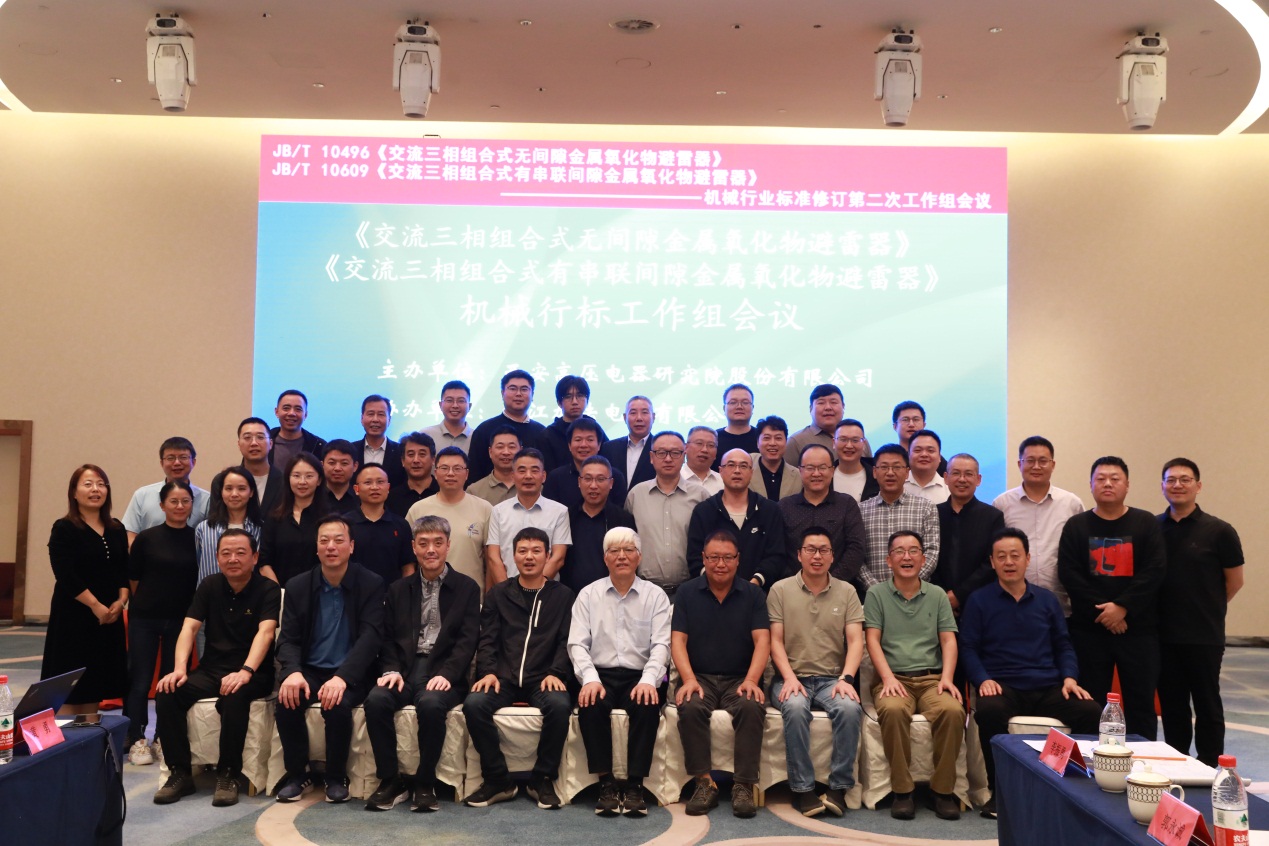 20241024日至26日,JB/T 1049620XX《交流三相组合式无间隙金属氧化物避雷器》和JB/T 1060920 XX《交流三相组合式有串联间隙金属氧化物避雷器》机械行业标准修订第二次工作组会议在温州乐清市召开,本次会议由SAC/TC81全国避雷器标准化技术委员会挂靠单位投注 主办,浙江加法电气有限公司协办。来自科研院所、检测认证机构、制造商和用户共40余位行业专家参会。