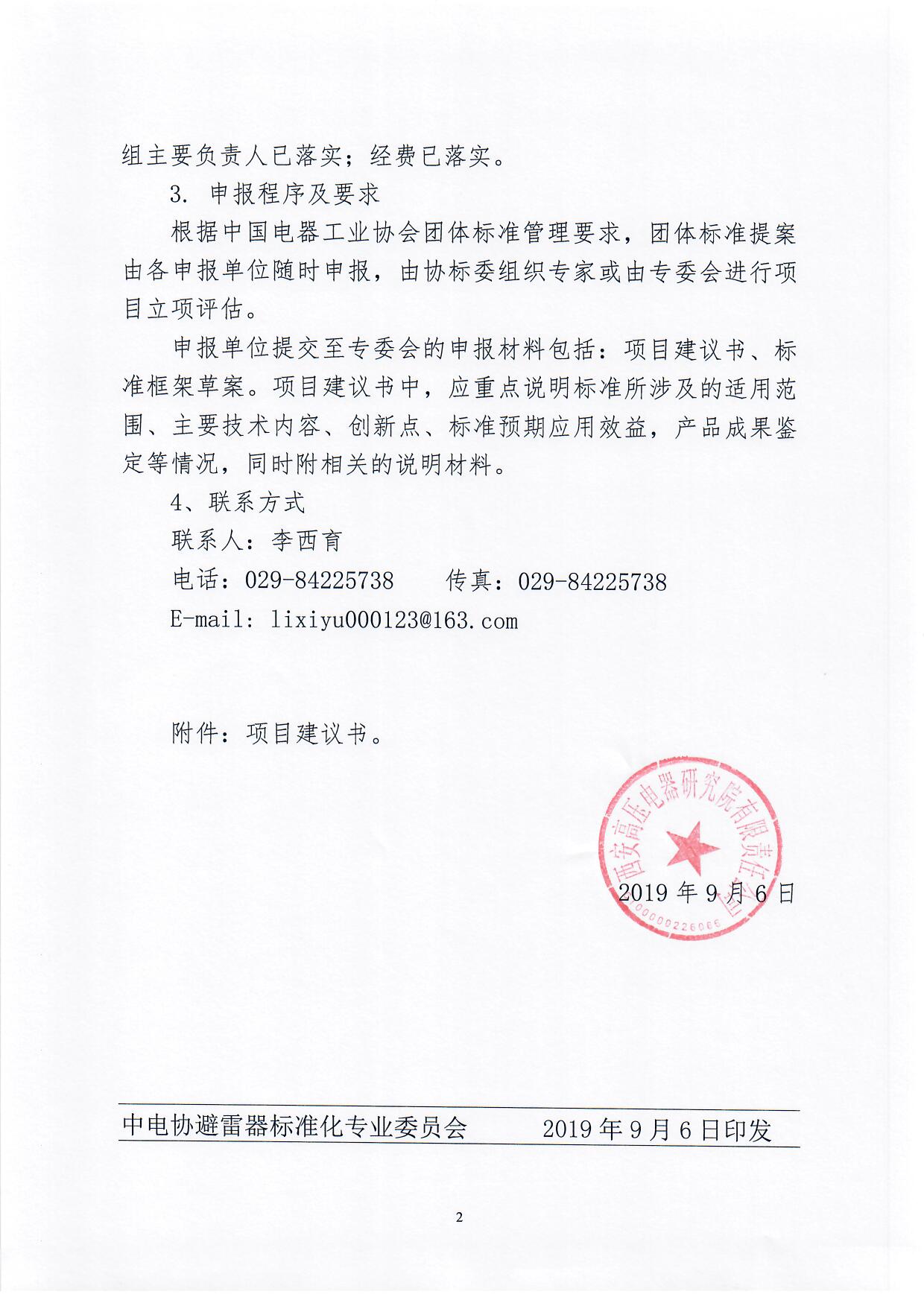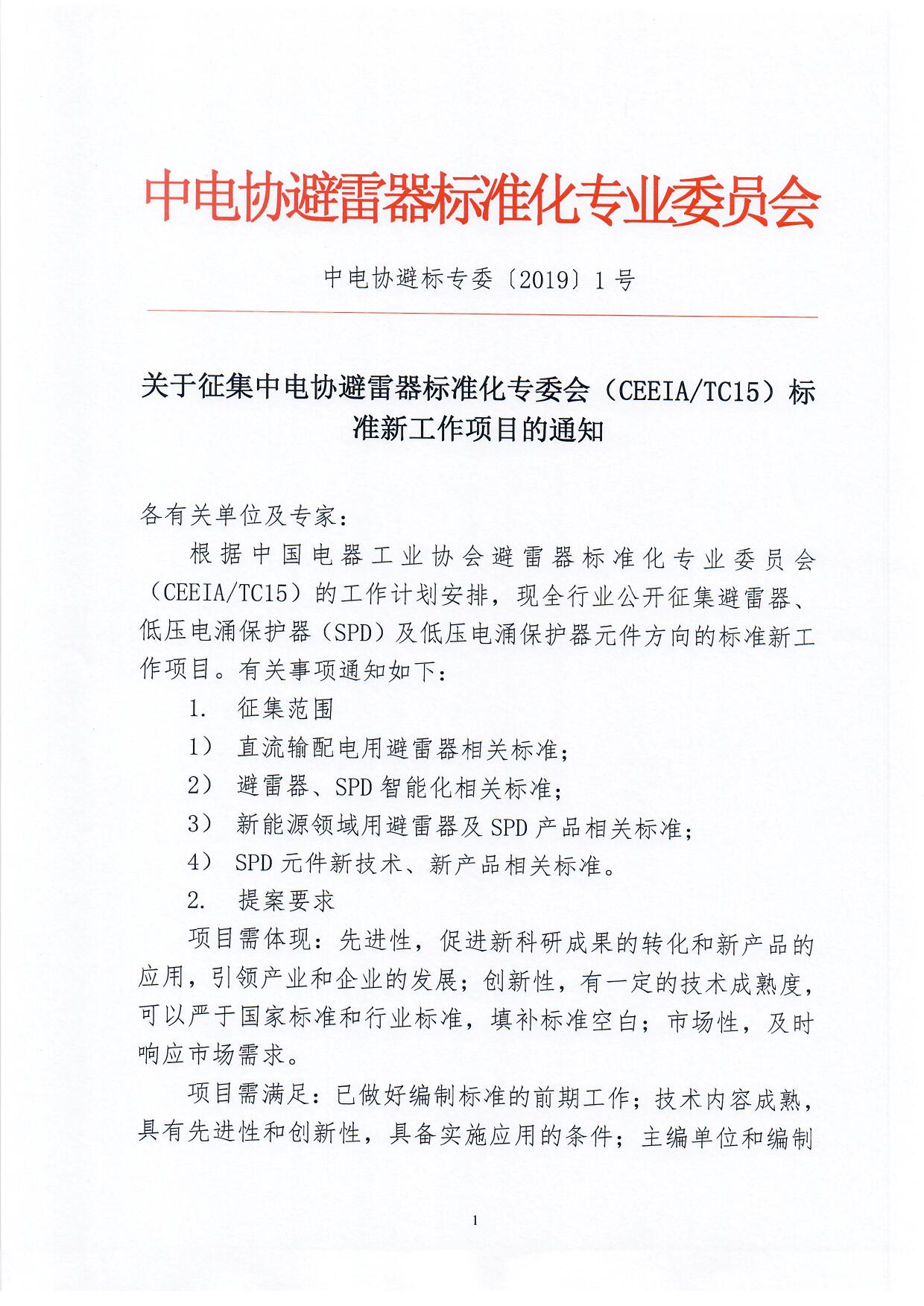 关于征集中电协避雷器标准化专委会(CEEIATC15)标准新工作项目的通知