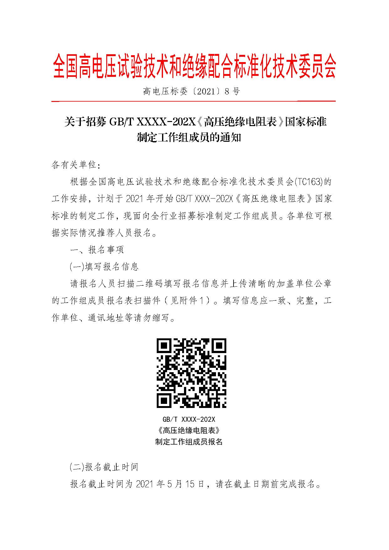关于招募GBT XXXX-202X《高压绝缘电阻表》国家标准制定工作组成员的通知