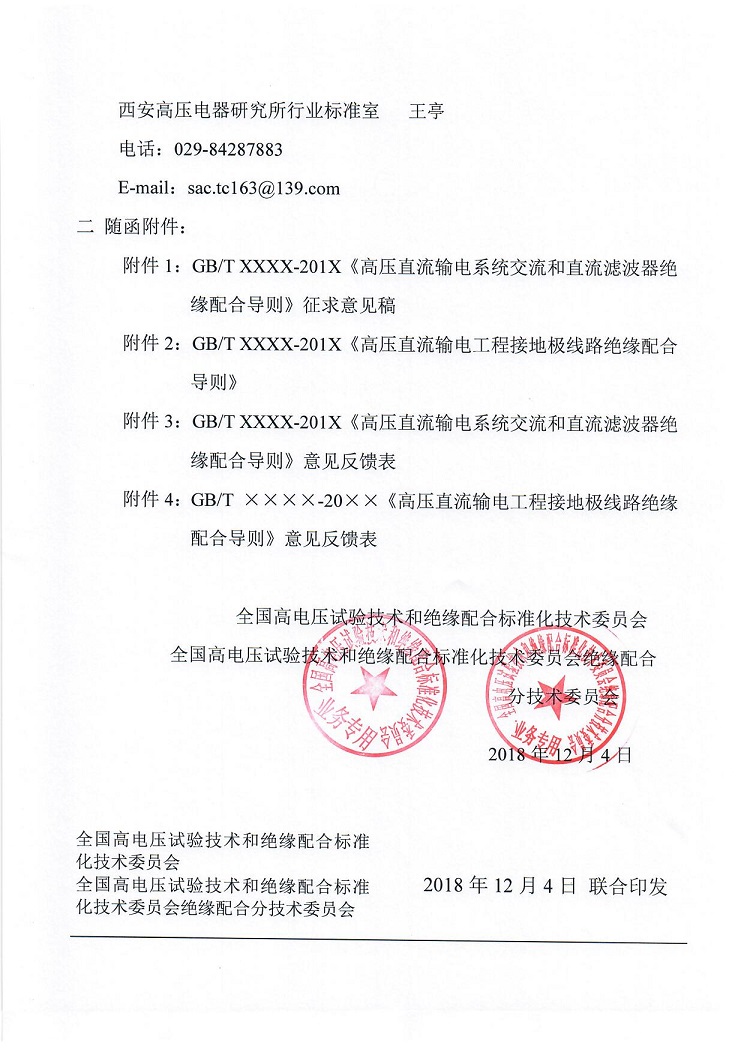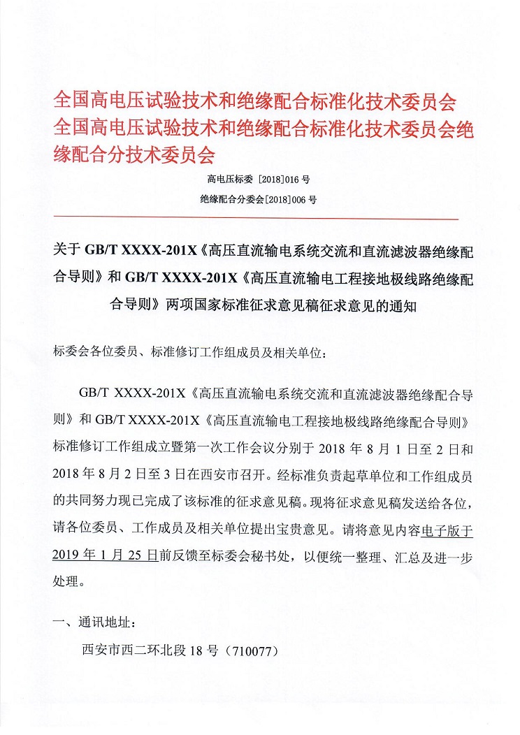 关于GB/T XXXX-201X《高压直流输电系统交流和直流滤波器绝缘配合导则》和GB/T XXXX-201X《高压直流输电工程接地极线路绝缘配合导则》两项国家标准征求意见稿征求意见的通知