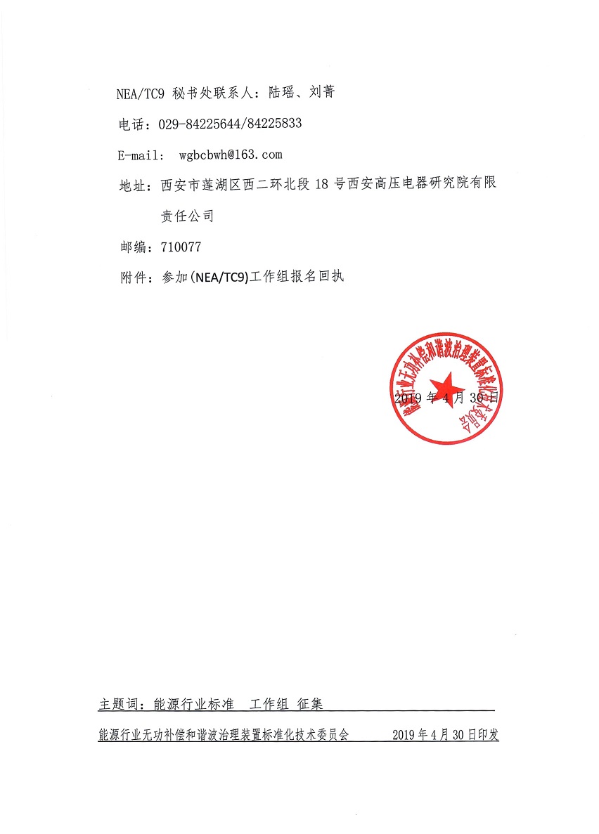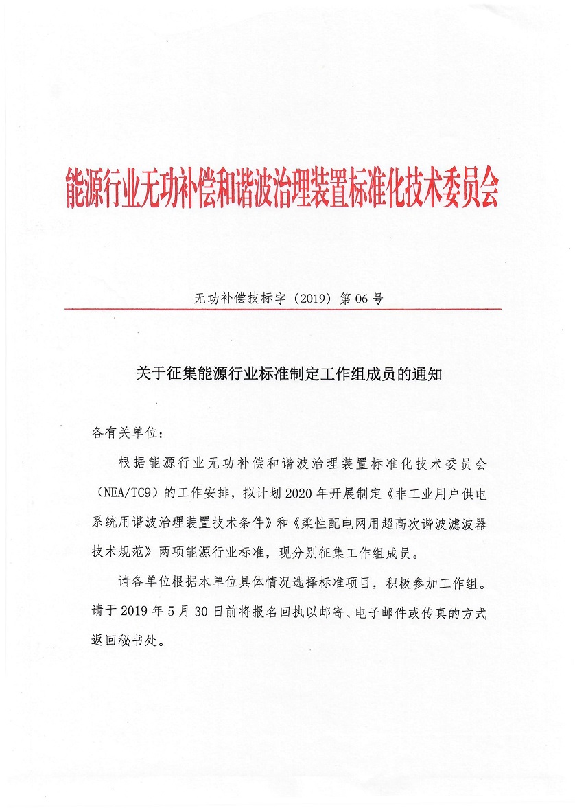 无功技标字8号——关于征集TC9能源行业标准申报项目的通知