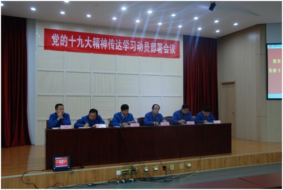 党委组织召开了“党的十九大精神传达学习动员部署会议”,会议由党委副书记元复兴同志主持。党委委员、各党支部书记及委员、全体中层干部参加了本次会议。