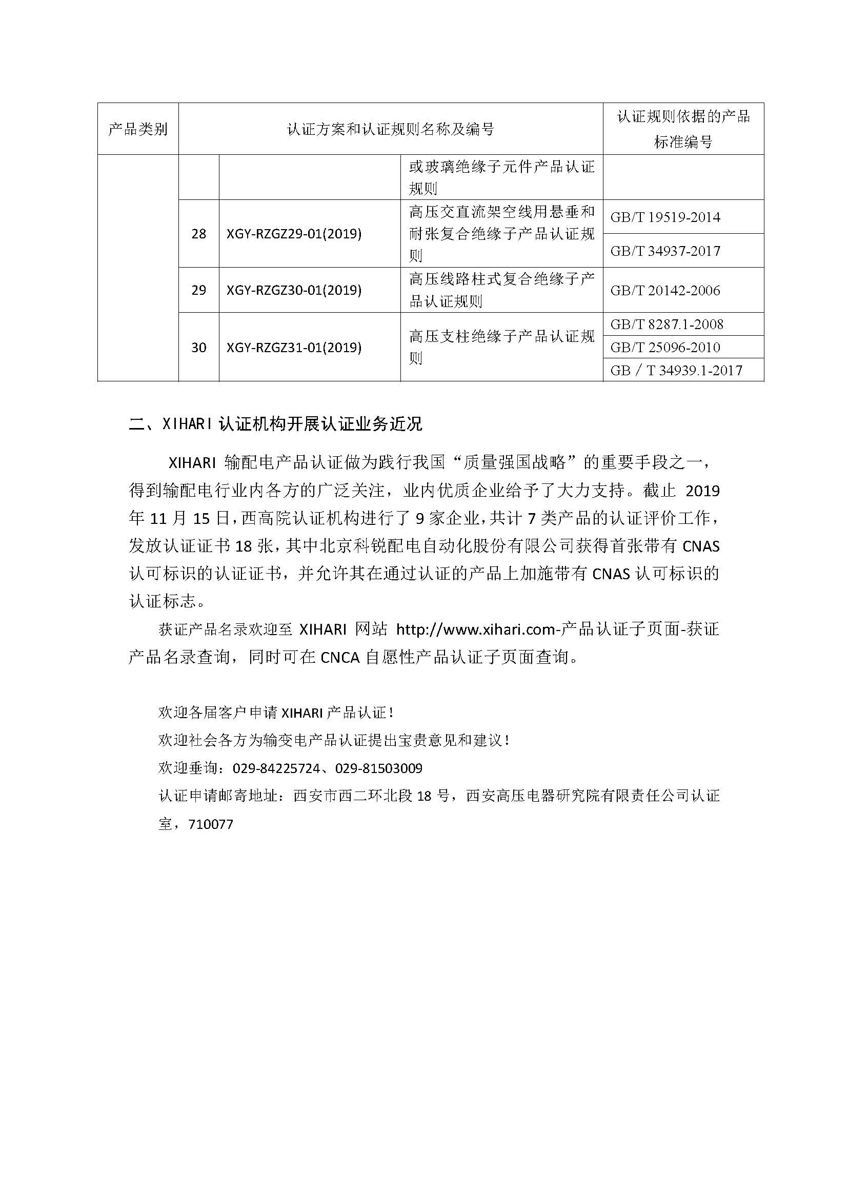 XIHARI输配电产品认证近期动态