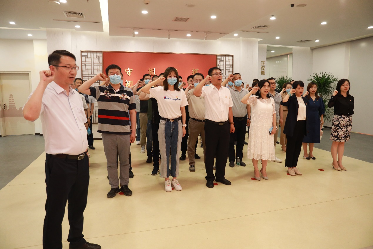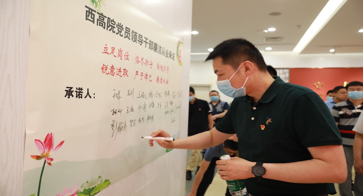 党员领导干部廉洁从业承诺上签名,并在党旗下重温入党誓词。