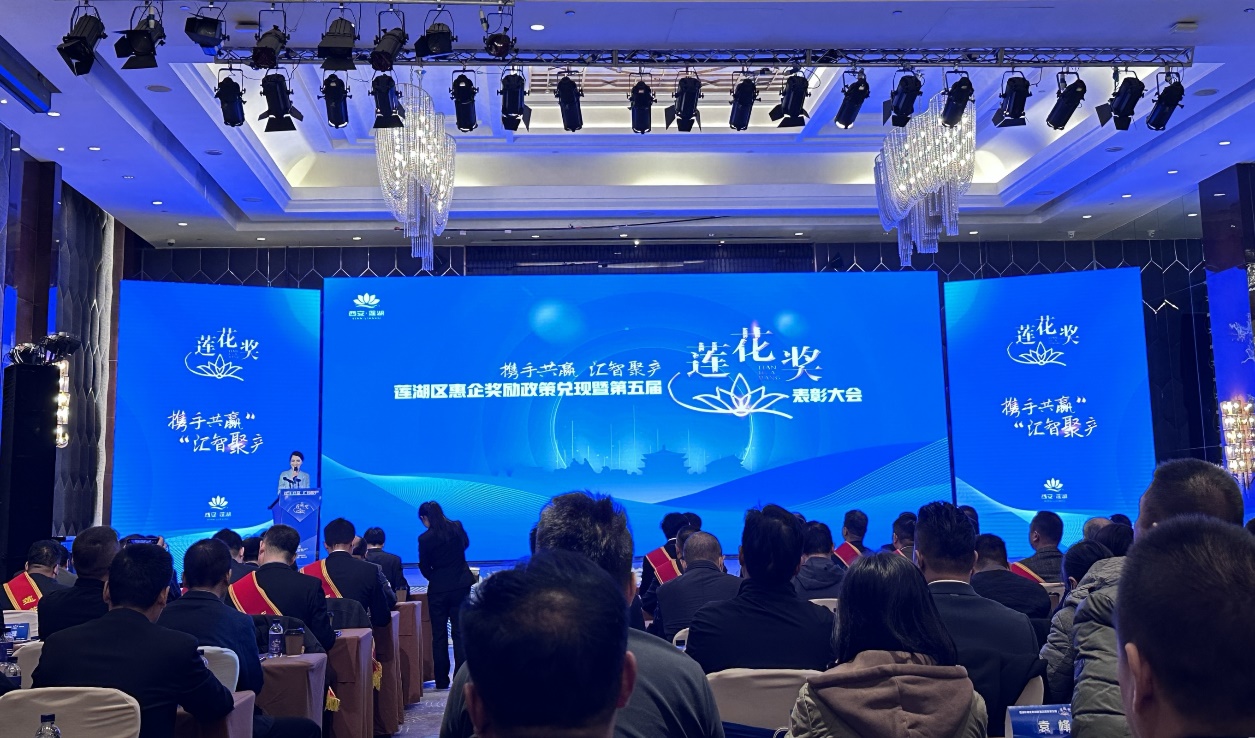 党委书记、董事长贾涛受邀出席莲湖区“携手共赢 汇智聚产”惠企奖励政策兑现暨第五届“莲花奖”表彰大会。省工商联、市政府、市工商联、莲湖区委、区政府等相关部门领导出席, 与120多位来自各行业的企业代表齐聚一堂,助力广大企业强信心、增动力。