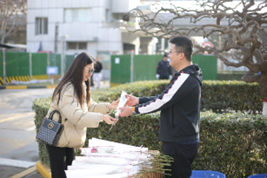 女职工一进门就收到了工会精心准备的玫瑰花,一句“节日快乐”、一张打卡留念,换来了大家的笑容和美好的一天。