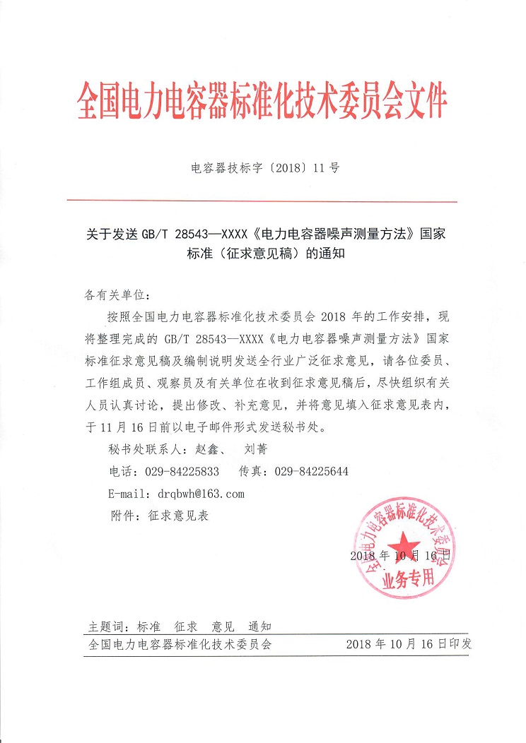 电容器技标字(2018)11号——关于发送GBT28543国家标准征求意见稿的通知