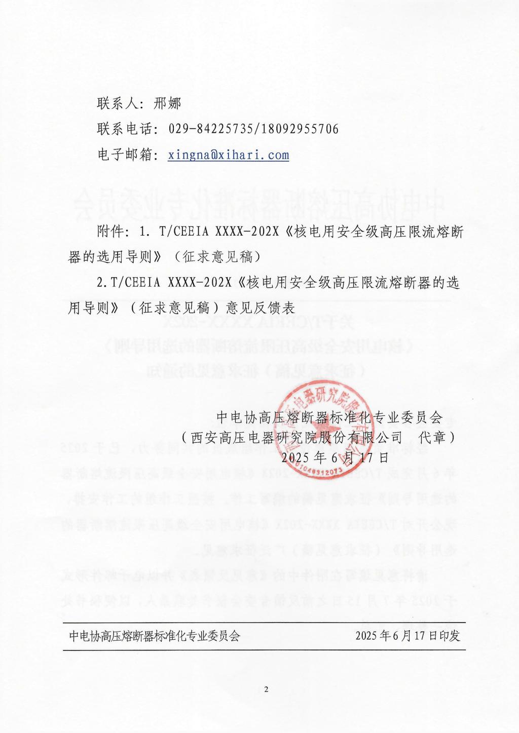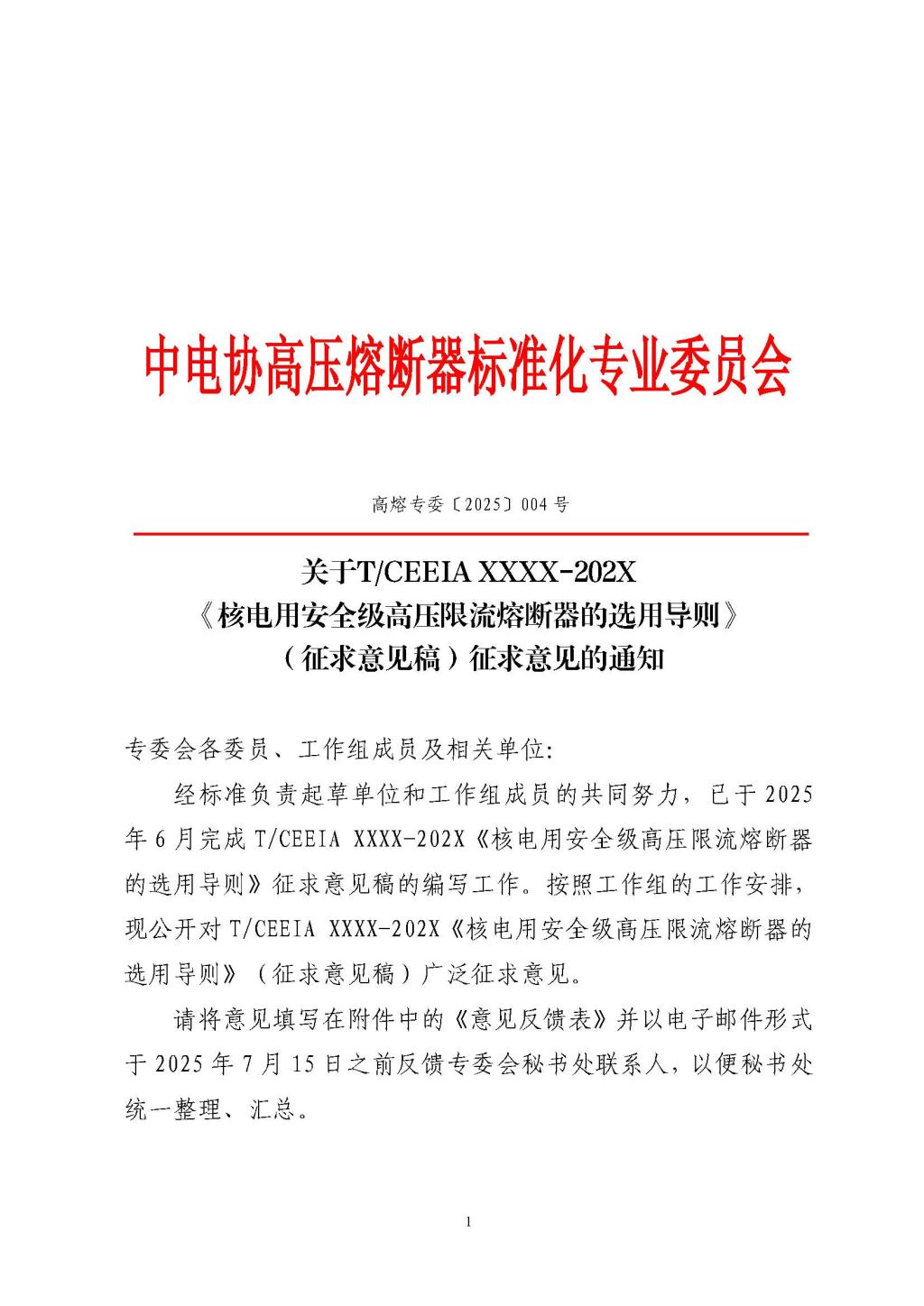 核电用限流熔断器的选用导则征求意见的通知