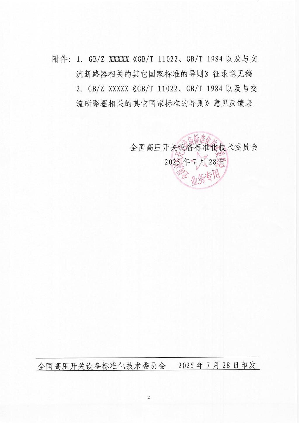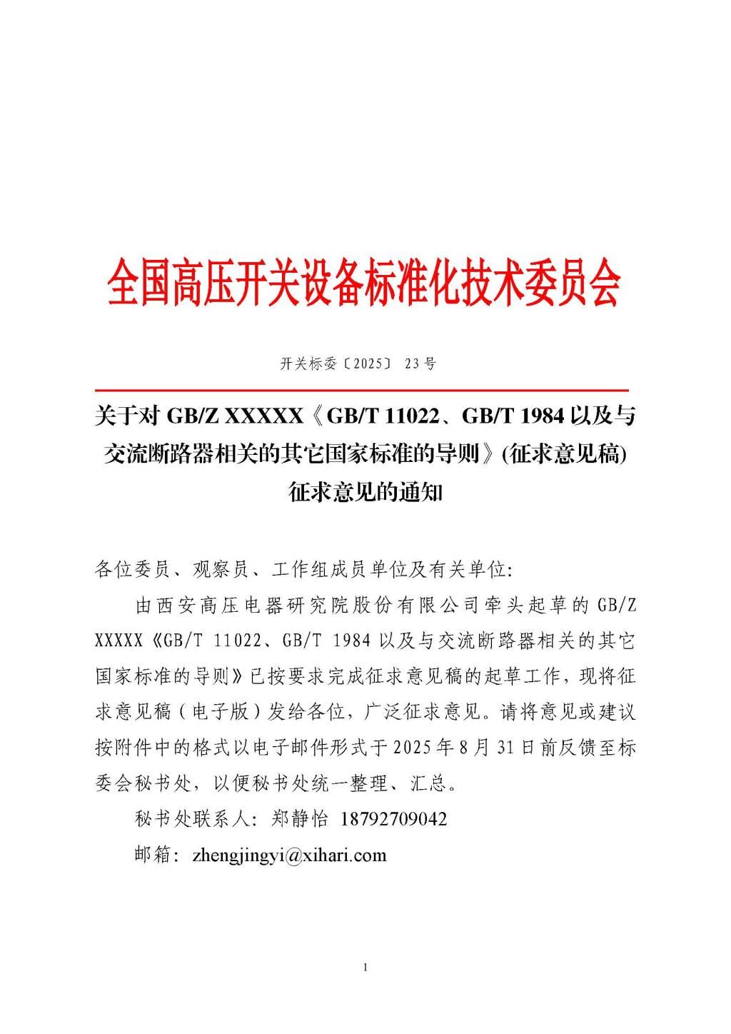 关于对GBZ XXXXX《GBT 11022、GBT 1984以及与交流断路器相关的其它国家标准的导则》(征求意见稿)征求意见的通知.pdf
