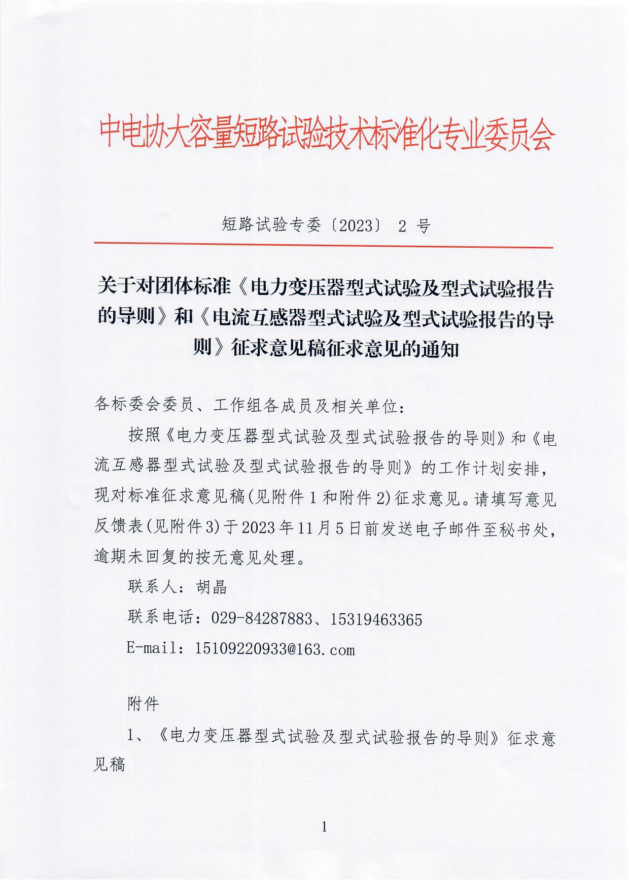 电力变压器及电流互感器型式试验及型式试验报告的导则 征求意见的通知.pdf