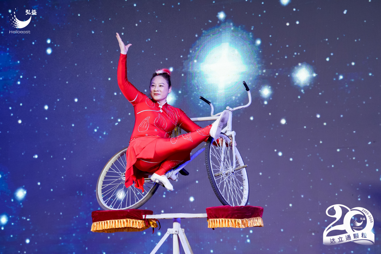 杂技表演环节,演员身怀绝技,展示高超技艺与惊人胆量。每一个高难度动作都让人屏住呼吸,心也跟着悬了起来,直到表演成功完成,大家才松了一口气,爆发出热烈的掌声。